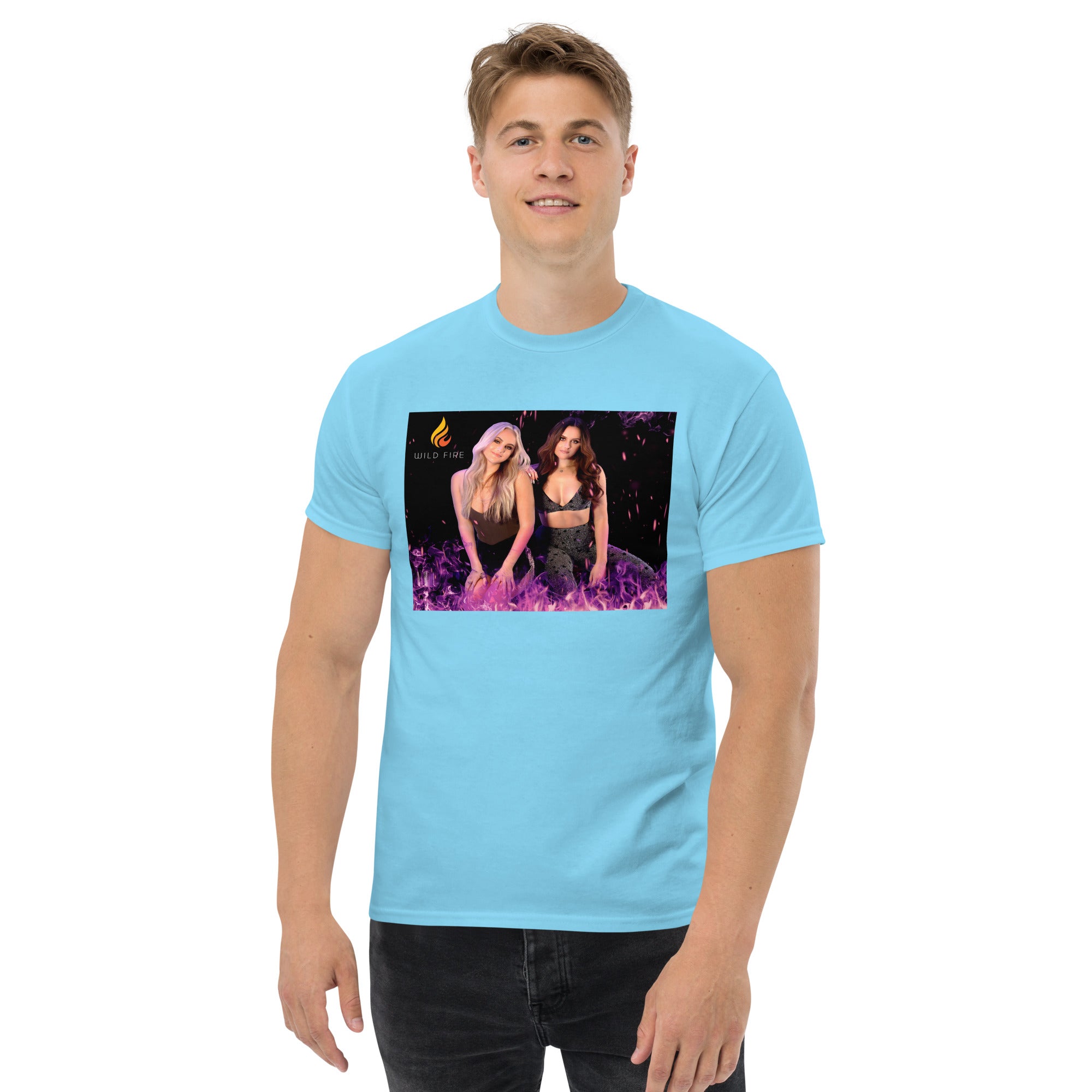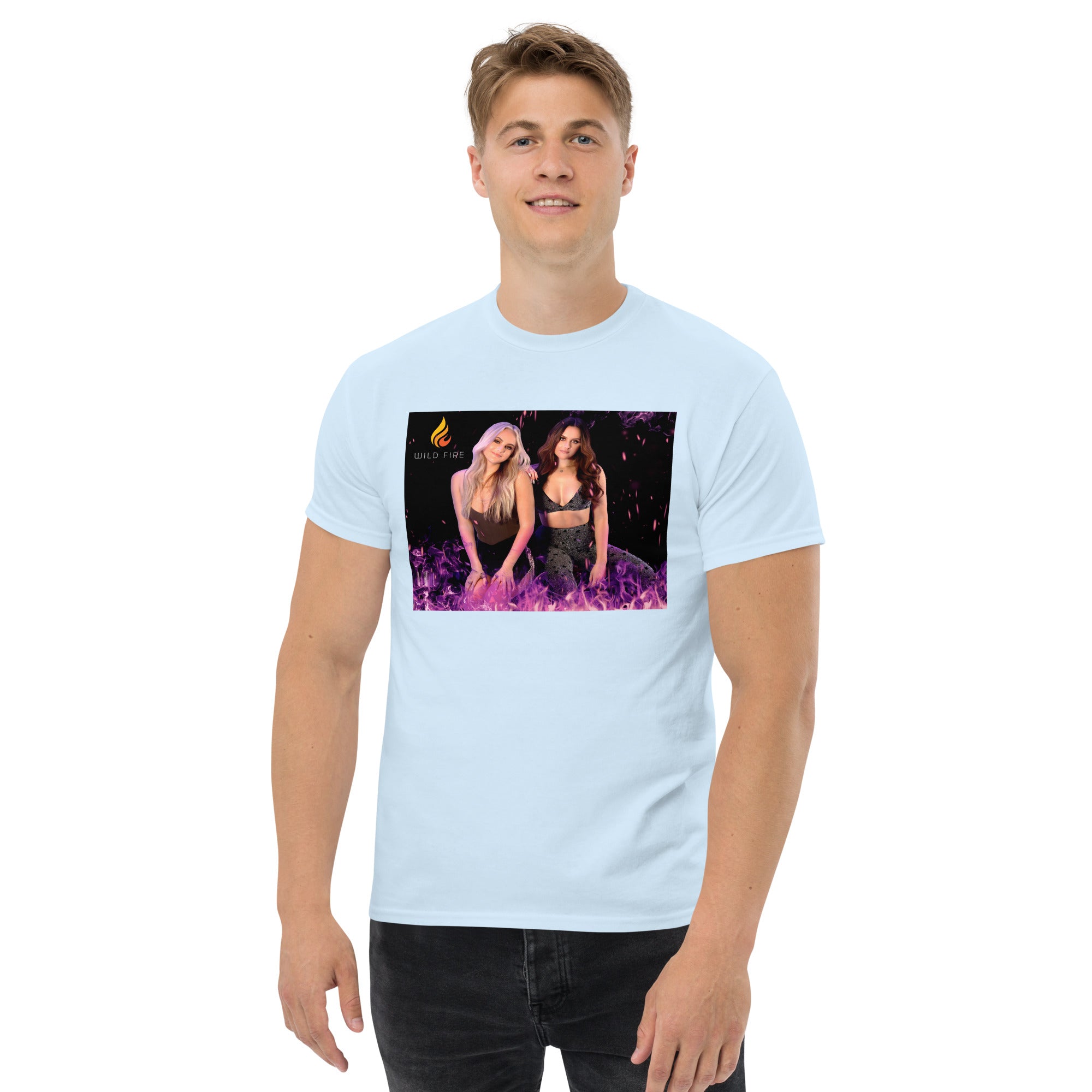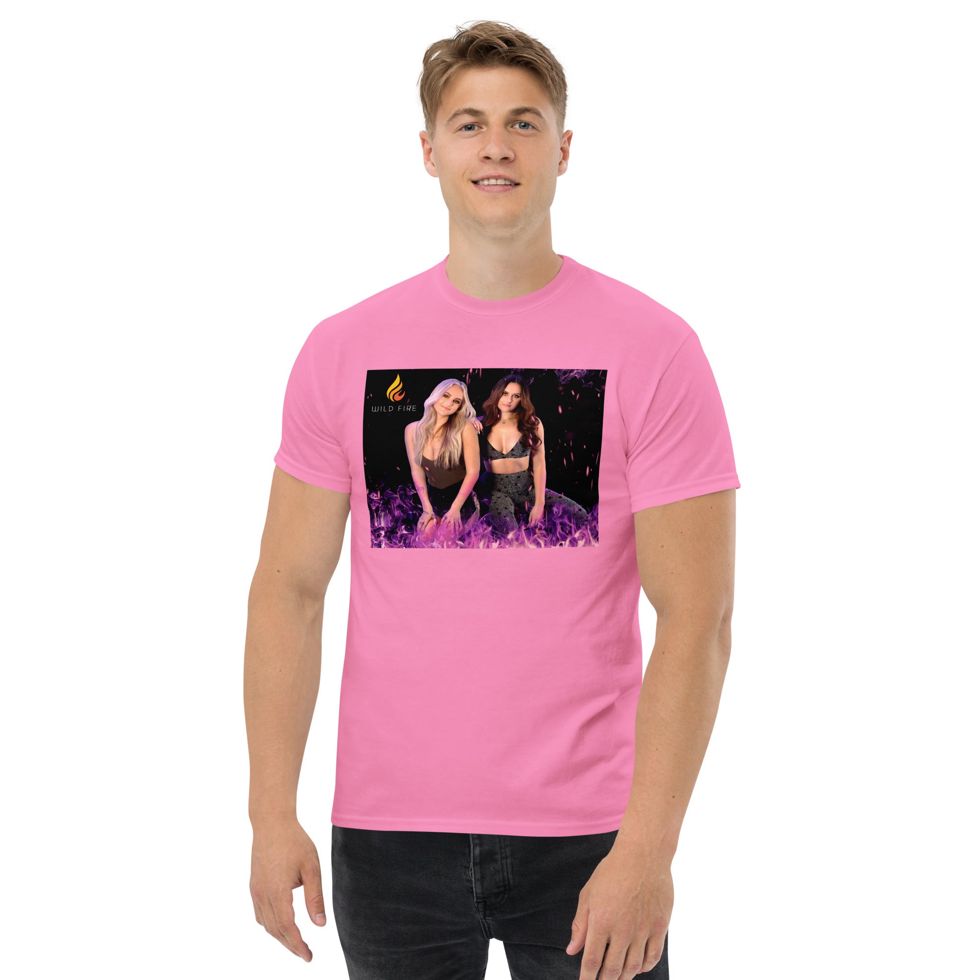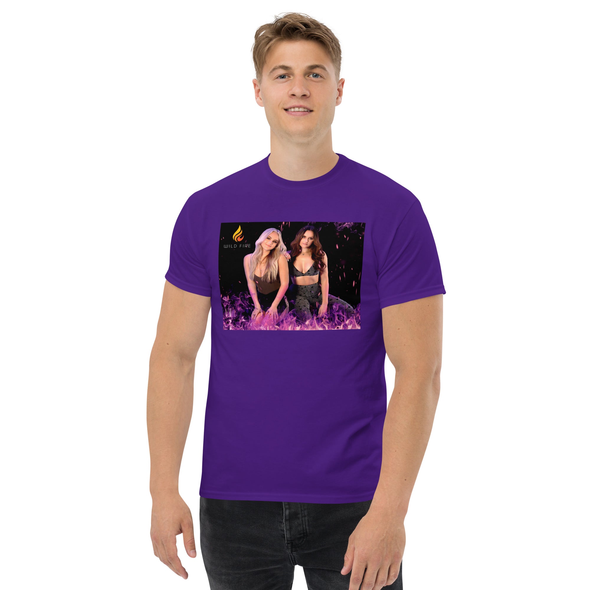 The 100% cotton Wild Fire "Purple Flames" t-shirt will help you land a more structured look. It sits nicely, maintains sharp lines around the edges, and goes perfectly with layered streetwear outfits. Plus, it's extra trendy now!
